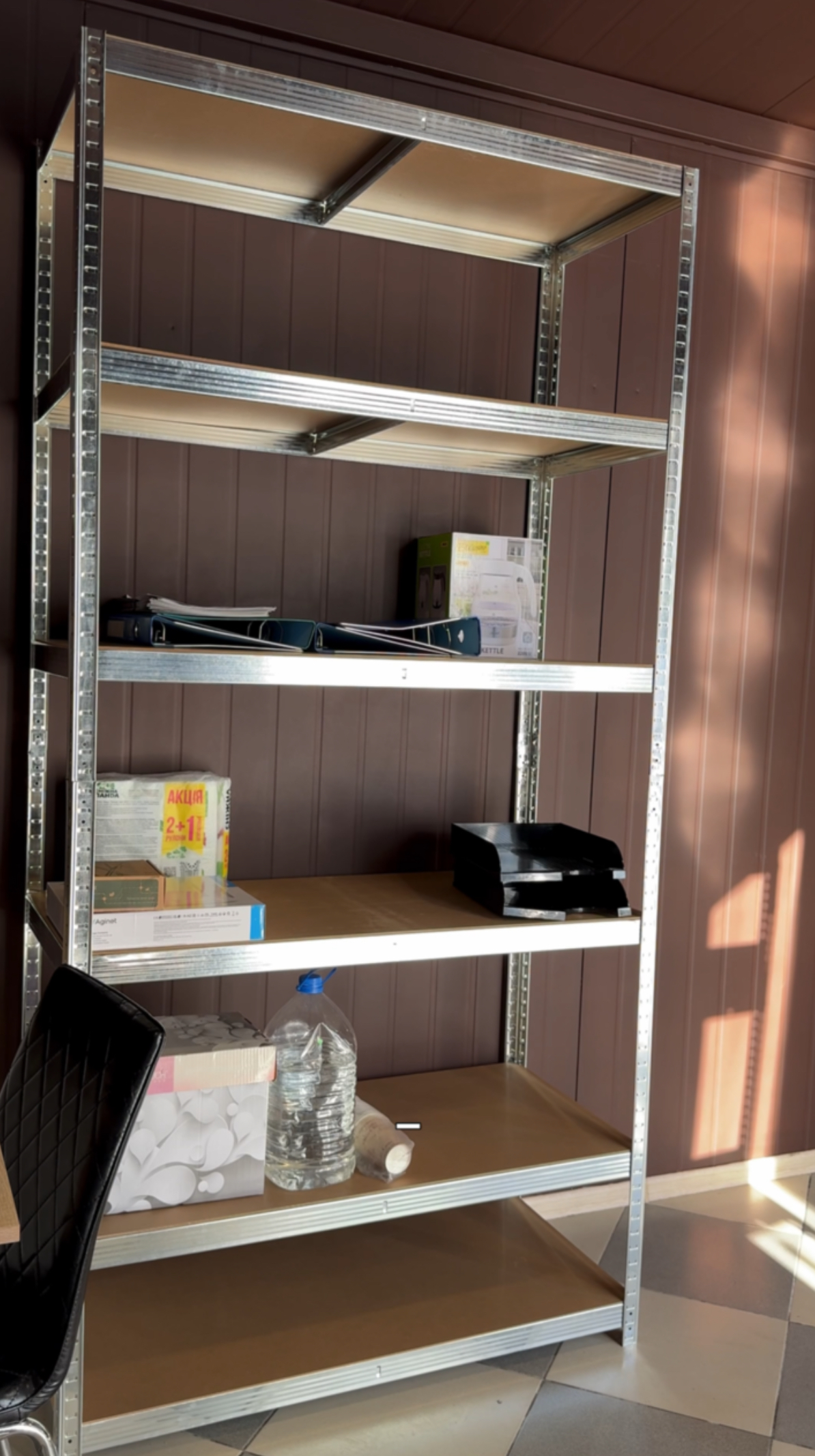 Замовила чоловіку в майстерню, але в результаті поставили ще один у кладовку 😅 Виглядає акуратно, не хитається, полиці витримують важкі коробки.